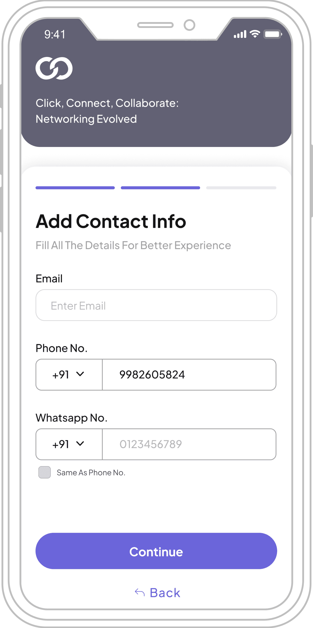 connect (e.g., show/hide LinkedIn or WhatsApp).